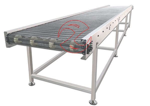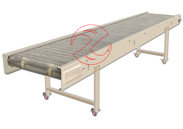網帶輸送機以金屬絲編織輸送帶為載體,在一定的線路上連續輸送物料的機械,常輸送塊狀、顆粒狀與整件物料的水平傾斜轉彎方向的輸送,網帶食品輸送機具有網孔,且網孔的大小可按需要選擇,食品輸送機網帶的長度可任意選定。網帶輸送機可按需加工成提升輸送機、轉彎輸送機、環形輸送機等網帶輸送線。